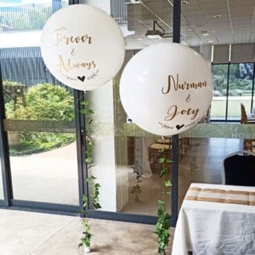 A beautiful leaf garland helium balloon for the blissful event. Order 2 for a set. Personalized your words in gold that will outshine your event. These balloons are perfect for a garden party, wedding, ROM or Pre-wed photo shoot. These lovely centerpiece makes your guest wow and captures beautiful pictures for your lovely moments.