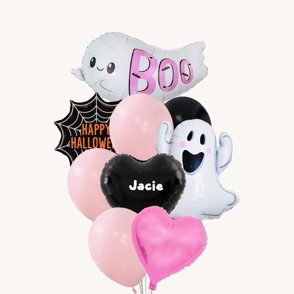 Elevate your Halloween festivities with our spellbinding Boo Ghost Halloween Grand Balloon Bouquet. This eye-catching arrangement features a delightful mix of balloons in classic Halloween hues, creating the perfect centrepiece for your spooky celebrations.