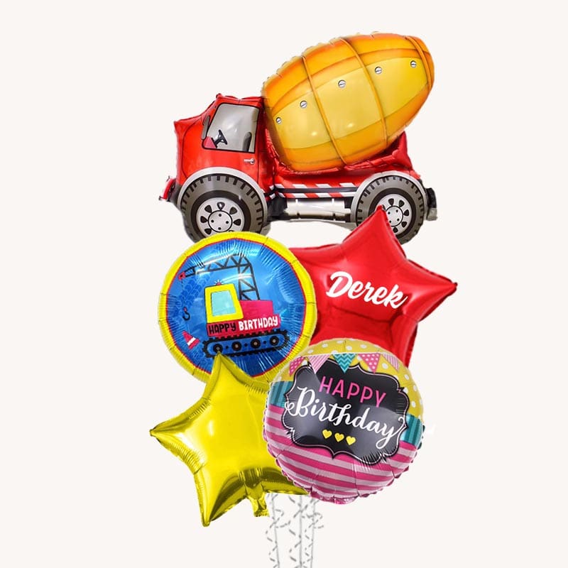 Get this Cement Truck Construction Balloon Bouquet uniquely matched by Funlah! Suitable for any themed parties or simply a delivered birthday gift for the Special Birthday King/Queen! if you require a change in colours please contact us. Match these with any of our assorted balloons. Please remember to deflate them and reuse or discard responsibly. View our other balloon bouquets and our package themes for more ideas.