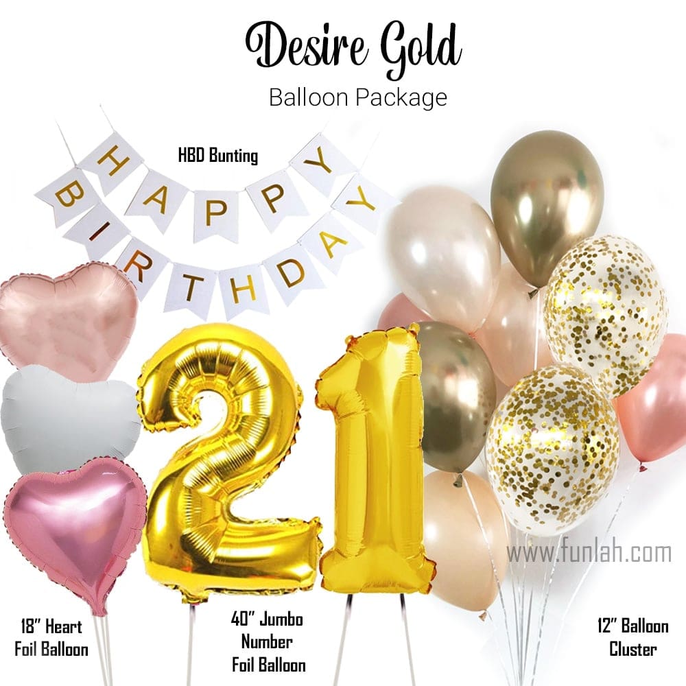 Get a Funlah Desire Gold Balloon Package for a wholesome sweetness fun-filled birthday party, 100 days old baby girl celebration or any special occasion. We’ve selected this theme for the darling angels. This package is also suitable for any birthday, anniversary, valentine’s day and even your wedding proposal day! Finally, Helium balloons or any balloon garlands will be ready-made upon self collection/delivered.