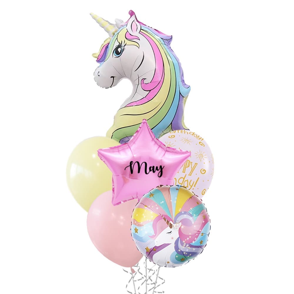 Dream Unicorn Balloon Bouquet. Pick the bouquet of your choice uniquely matched by Funlah. Suitable for any Unicorn Or Magical themed parties! if you require a change in colours please contact us. Match these with any of our assorted balloons. Please remember to deflate them and reuse or discard responsibly. View our other balloon bouquets and our package themes for more ideas.