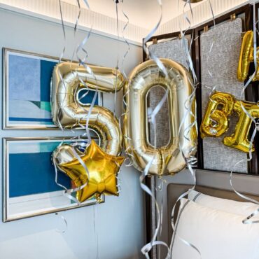 – Accent balloons placed around the bed and bedside area for a full-room effect