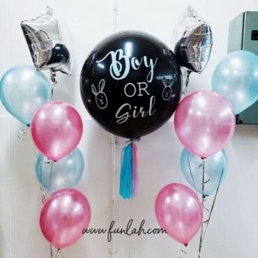 Announce your baby’s gender with an interactive Funlah Gender Reveal Balloon Package! Our 30″ Black Latex balloon will be filled with either blue or pink confetti; The expecting couple will just need to pop the balloon with any sharp object to reveal the baby’s gender. Truly a fun way to go about the reveal! If you require a change in colours please notify us. Stand out in birthday parties, pool parties and anniversaries. Match these with assorted balloon bouquets lastly please deflate them and reuse or discard accordingly. View our package themes for more ideas.