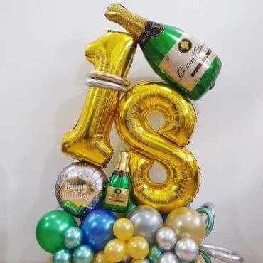 - 1 x Double Digit Champagne Bottle Deluxe Balloon Centerpiece (Air-Filled, place on the floor)