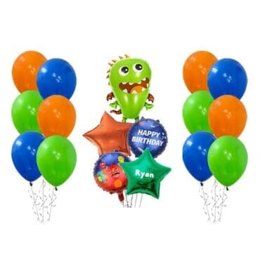 Get this Happy Green Space Monster Balloon Bouquet for your little space adventurer! Pick the bouquet of your choice uniquely matched by Funlah. Suitable for any themed parties or simply a delivered birthday gift for the Special Birthday Space Explorer! if you require a change in colours please contact us. Match these with any of our assorted balloons. Please remember to deflate them and reuse or discard responsibly. View our other balloon bouquets and our package themes for more ideas.