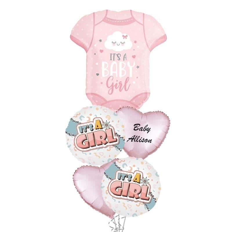 It’s a twinkling joy of happiness! Our fun-filled way with Its a Baby Girl Onesie Balloon Bouquet for your little princess party or celebration. Get this theme uniquely on Funlah with a customized name on your heart foil balloon