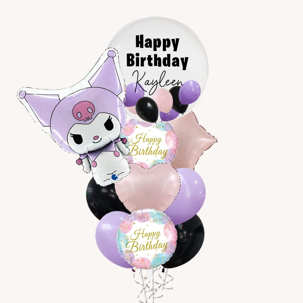 Make your birthday unforgettable with our Kuromi Deluxe Birthday Balloon Bouquet! This eye-catching set showcases the mischievous and adorable Kuromi character, surrounded by a stylish array of coordinating balloons. Perfect for Sanrio enthusiasts and anyone looking to add a touch of kawaii charm to their celebration. Order now to bring the magic of Kuromi to your next party!