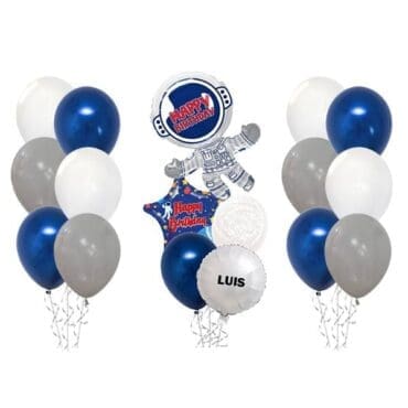 Space Astronaut Birthday Balloon Bouquet. Pick the bouquet of your choice uniquely matched by Funlah. Great for all party themes if you require a change in colours please notify us. Stand out in birthday parties, pool parties and anniversaries. Match these with assorted balloon bouquets lastly please deflate them and reuse or discard accordingly. View our package themes for more ideas.