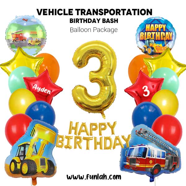 Have a blast with the Vehicle Transportation Birthday Bash Balloon Package for a fun-filled birthday party, surprise party or any special occasion. View more animated birthday bash packages here. Furthermore, Choose the theme in addition with your preferred color. What’s better than we deliver to you and set up is a piece of cake. Funlah’s Balloon Packages don’t include setup. Lastly, Helium balloons and balloon garlands will be ready made upon self collection/delivered.