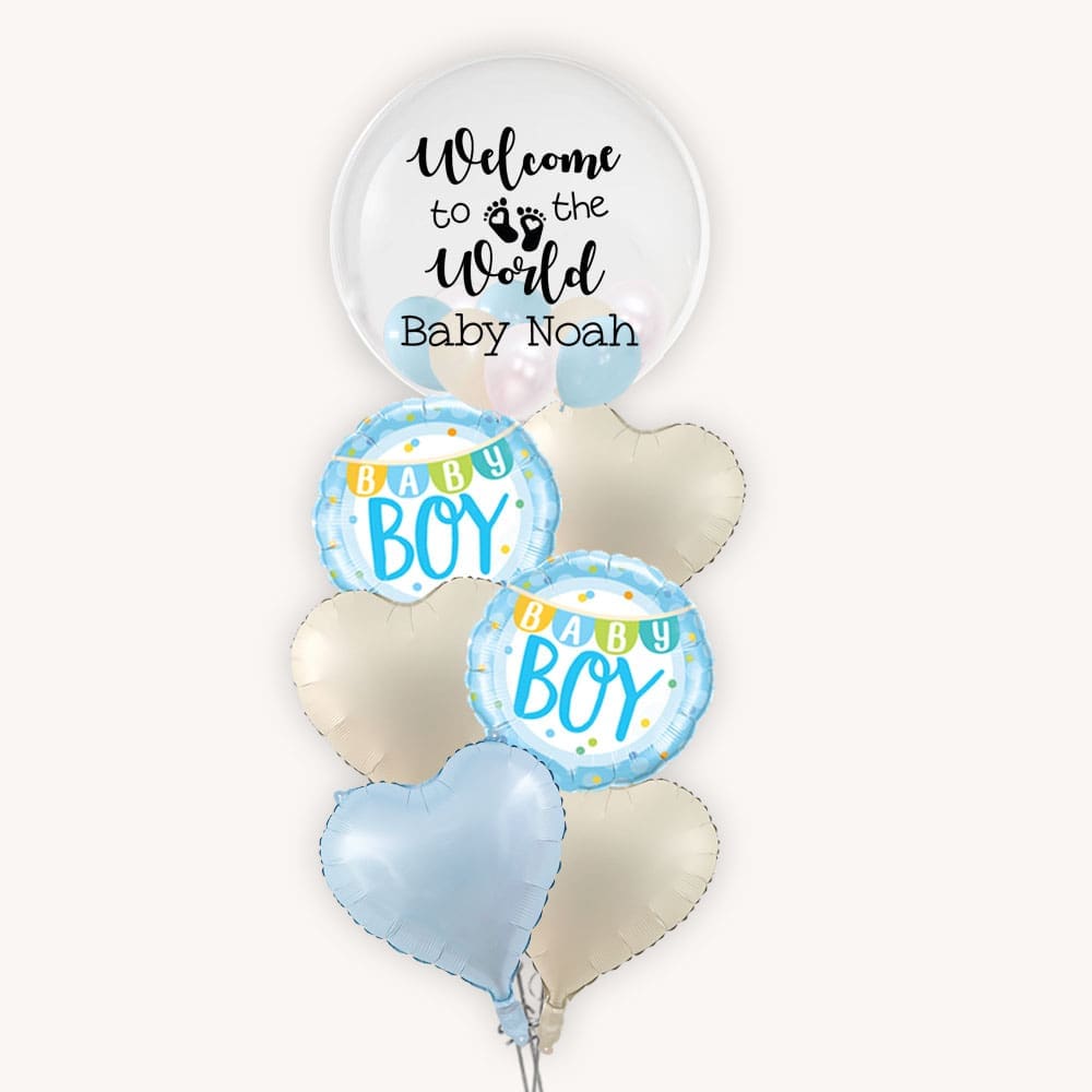• Eye-catching heart-shaped foil balloon with ‘Welcome Baby Boy’ message