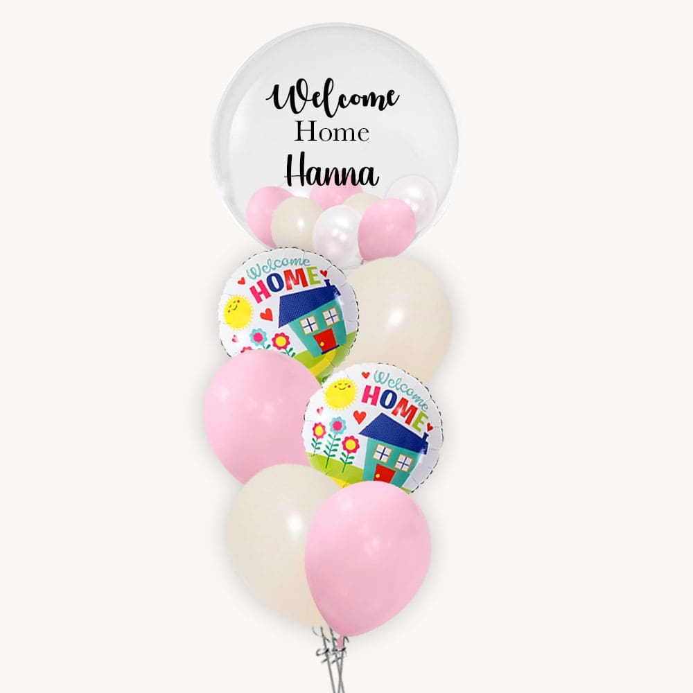 Welcome your loved ones home with our charming ‘Welcome Home’ House-shaped Pink Bubble Pop Balloon Bouquet. This delightful arrangement features a meticulously crafted house-shaped foil balloon, surrounded by an array of playful pink bubble balloons. Perfect for homecomings, housewarming parties, or any special occasion that calls for a warm welcome.